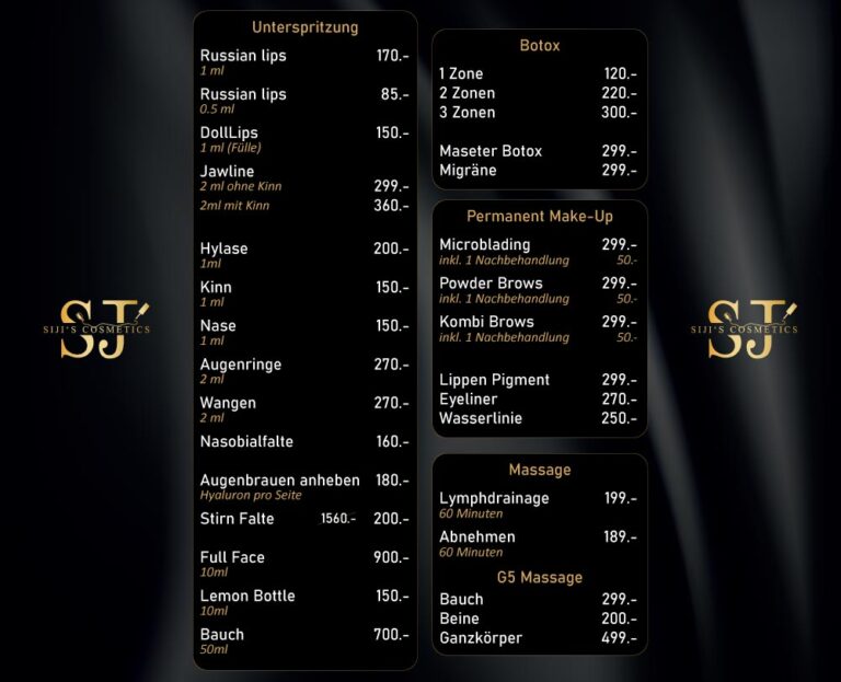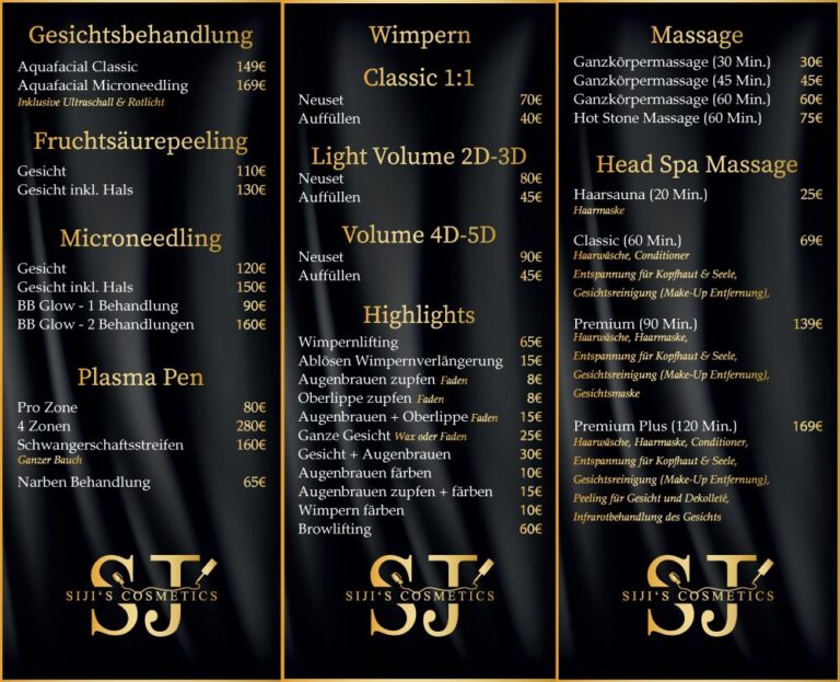 helena2025-04-17 Ich gehe schon länger hierher zum Augenbrauenzupfen und zur Laser-Haarentfernung bei Alev. Sie nimmt sich immer richtig viel Zeit und mittlerweile wachsen fast keine Haare mehr also sehr gut. Kann den Laden auf jeden Fall empfehlen Arzu Gülec2025-04-14 Die Atmosphäre ist sehr schön, die Mitarbeiter sehr freundlich. Ich habe meine Augenbrauen machen lassen und bekomme überall Komplimente für sie. Die Fußpflege ist sehr gut und lässt einen neu fühlen. Li Ma2025-04-05 Super entspannend ,nette Personal & schönes Ambiente :) Belinda Faibil2025-04-01 Arbeiten sehr sauber, sehr genau und sehr professionell. Ein extra plus für die professionelle Beratung und Aufklärung. Ein sehr schönes Ambiente und sehr ein sauber laden. Nur empfehlenswert. Anette Koch2025-03-25 Ich war bei Rihanna und hatte mir eine Plasma Pen Behandlung gegönt .Super nette Kosmetikerin mit viel Wissen und super gute Aufklärung bei jedem Handgriff den Sie machte .Sie arbeitet sehr sauber und professionell. Zwischen durch wird gefragt ob man was trinken möchte .Ich werde jetzt öfters bei Sijis cosmetiks vorbei schauen . Direnc Unay2025-03-18 Super Behandlung. Die Kosmetikbehandlung war super. Riri war besonders Professionell, findet man leider in der heutigen Zeit immer seltener. Die Alev auch sehr kompetent und lässt sich zeit für die Kunden. Danke für diese positive Erfahrung. Aylin Karakurt2025-03-04 Sehr freundliche Mitarbeiter. Leider stimmten die Preise nicht, sodass ich etwas enttäuscht war. Statt 20 habe ich 30€ bezahlt. Man nahm sich wirklich viel Zeit für die Nägel. Der Mitarbeiter ist auf meine Wünsche und Verbesserungsvorschläge freundlich eingegangen. 04.03.25 (update): Vielen Dank nochmal für die Kulanz. Meine Nägel sind wieder super schön geworden. Das Personal ist sehr freundlich und professionell. Es wird einem etwas zu trinken angeboten und auch nach mehreren Korrekturwünschen sind sie sehr geduldig und freundlich geblieben (Nagel war mehrmals dann doch noch zu lang…). Ich werde definitiv öfter vorbei kommen und mir die Nägel machen lassen. Das Set davor hat auch super gehalten und sah auch nach mehreren Wochen schön aus. Al Us2025-02-20 Toller Service und es ging schnell und sorgfältig.